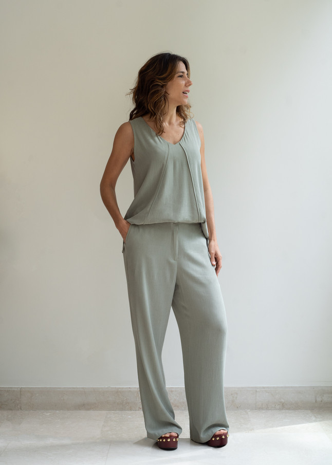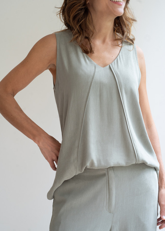 Regata detalhe vies, uma peça em estilo alfaiataria. Confeccionada com tecido leve de liocel e viscose, oferece conforto e frescor. O detalhe em vies proporciona um caimento perfeito e adiciona um toque de modernidade à peça.